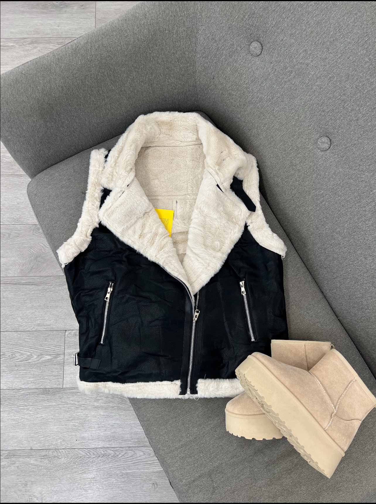 Jelek Biker me Gëzof dhe Stivali të Ngrohtë – Kontrasti I Stilit Dimëror