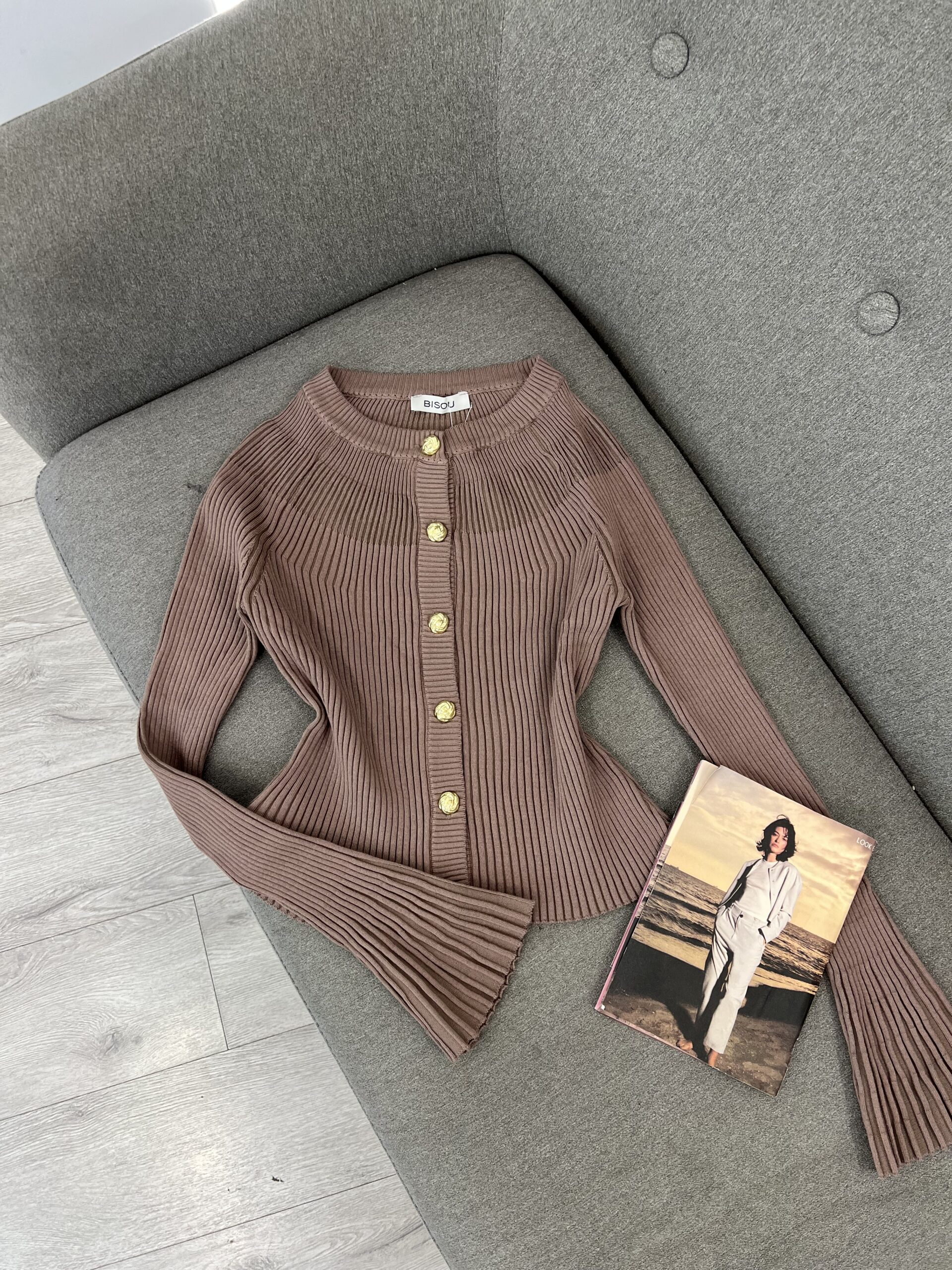 Kjo bluzë e thurur ofron një stil elegant dhe modern, e përshtatshme për kombinime të ndryshme veshjesh. Ajo ka një prerje të veçantë që i jep veshjes një pamje të rafinuar.